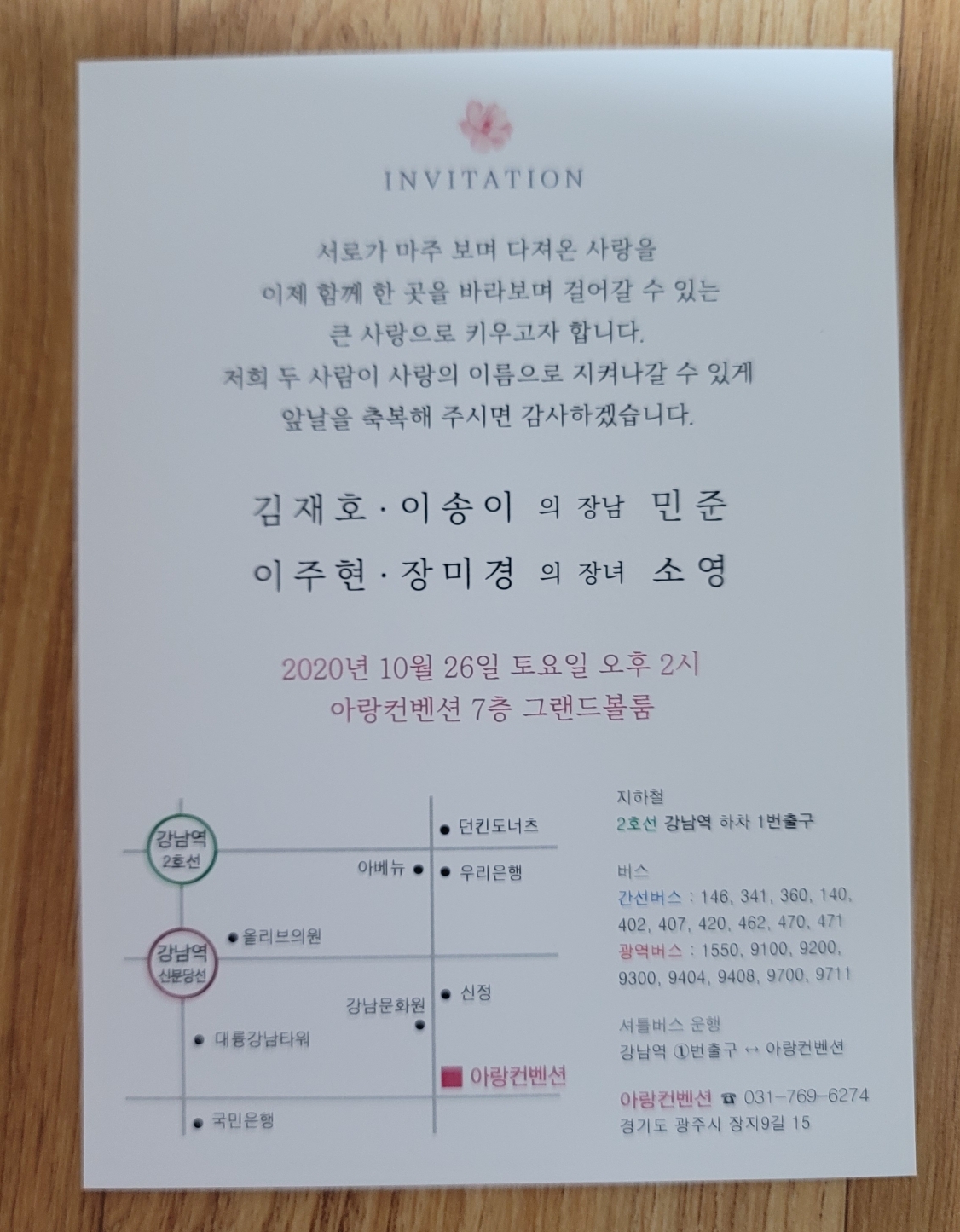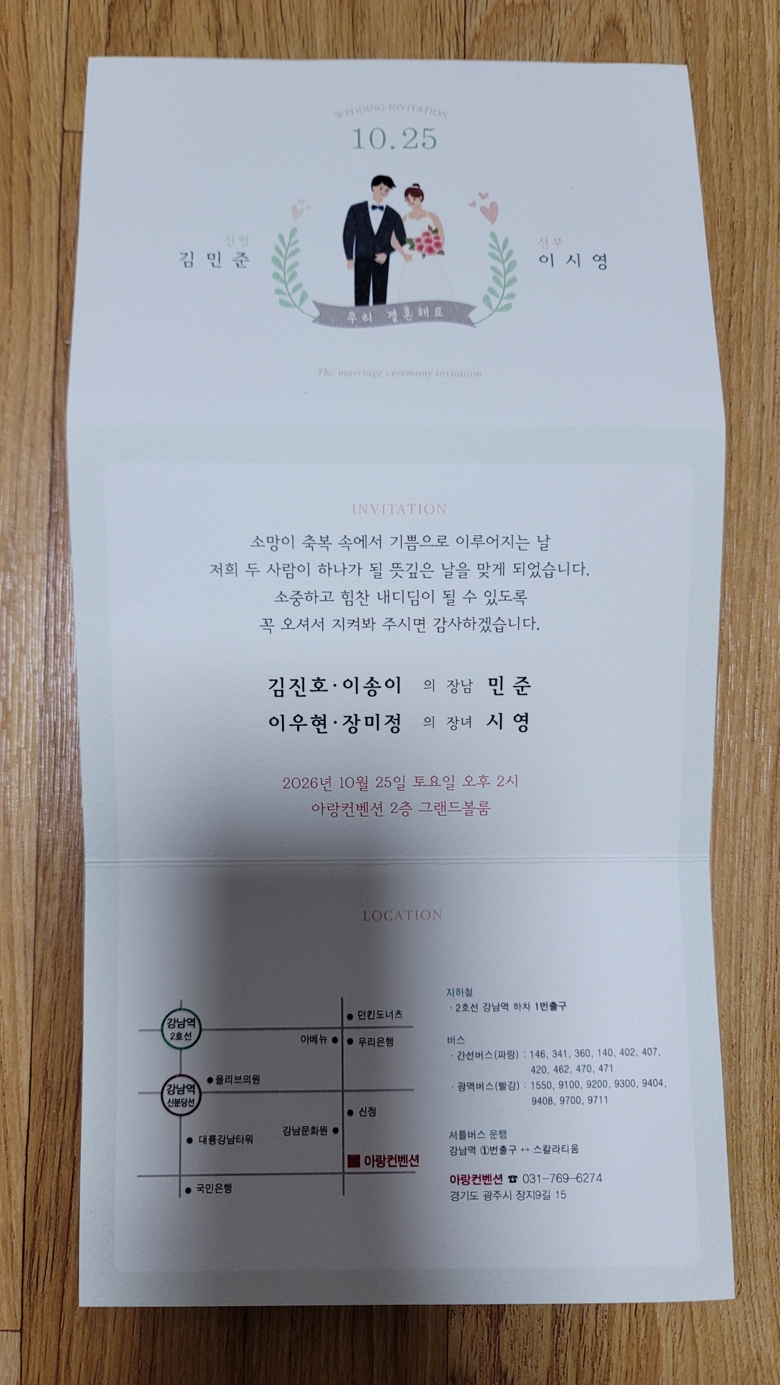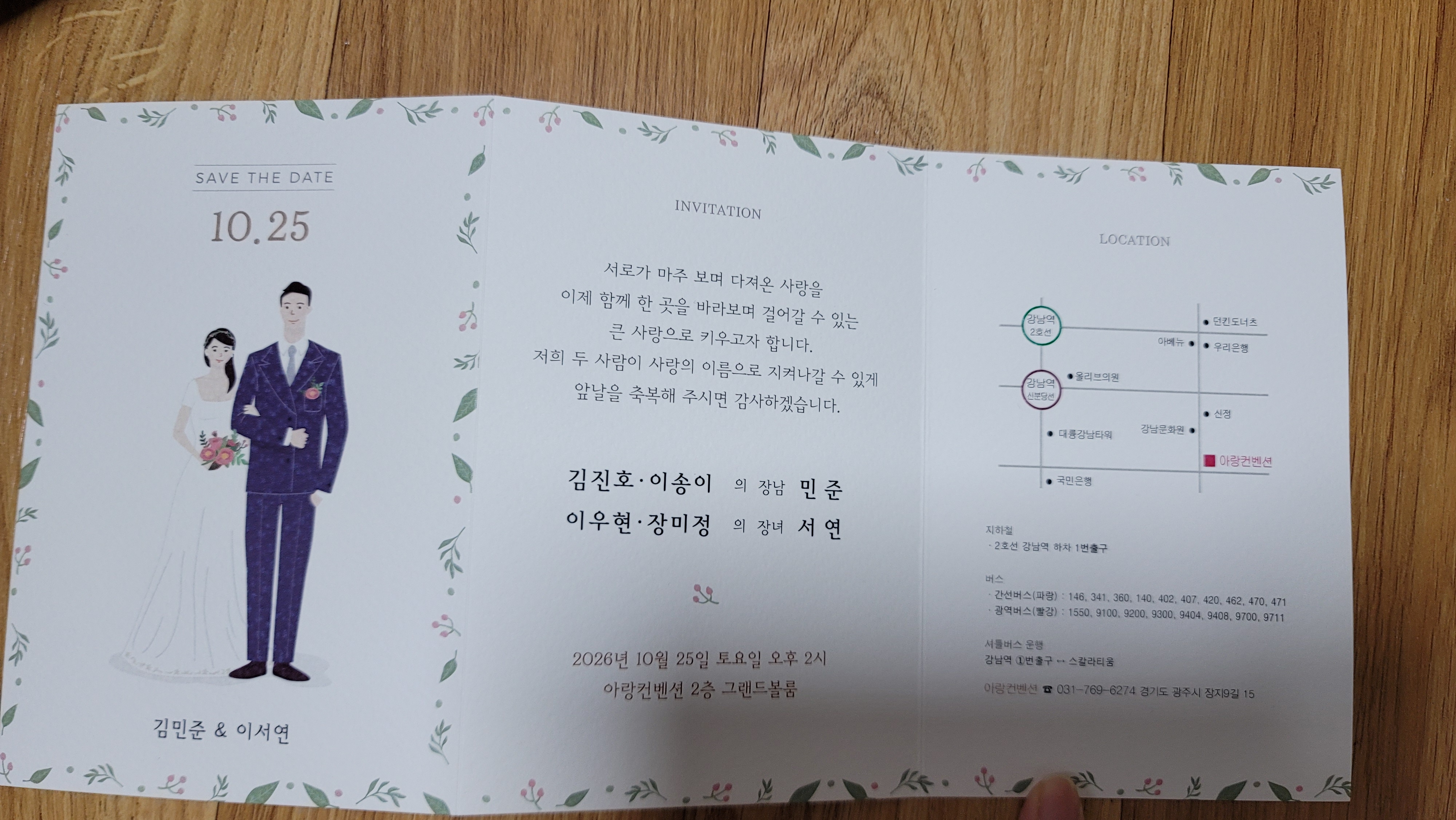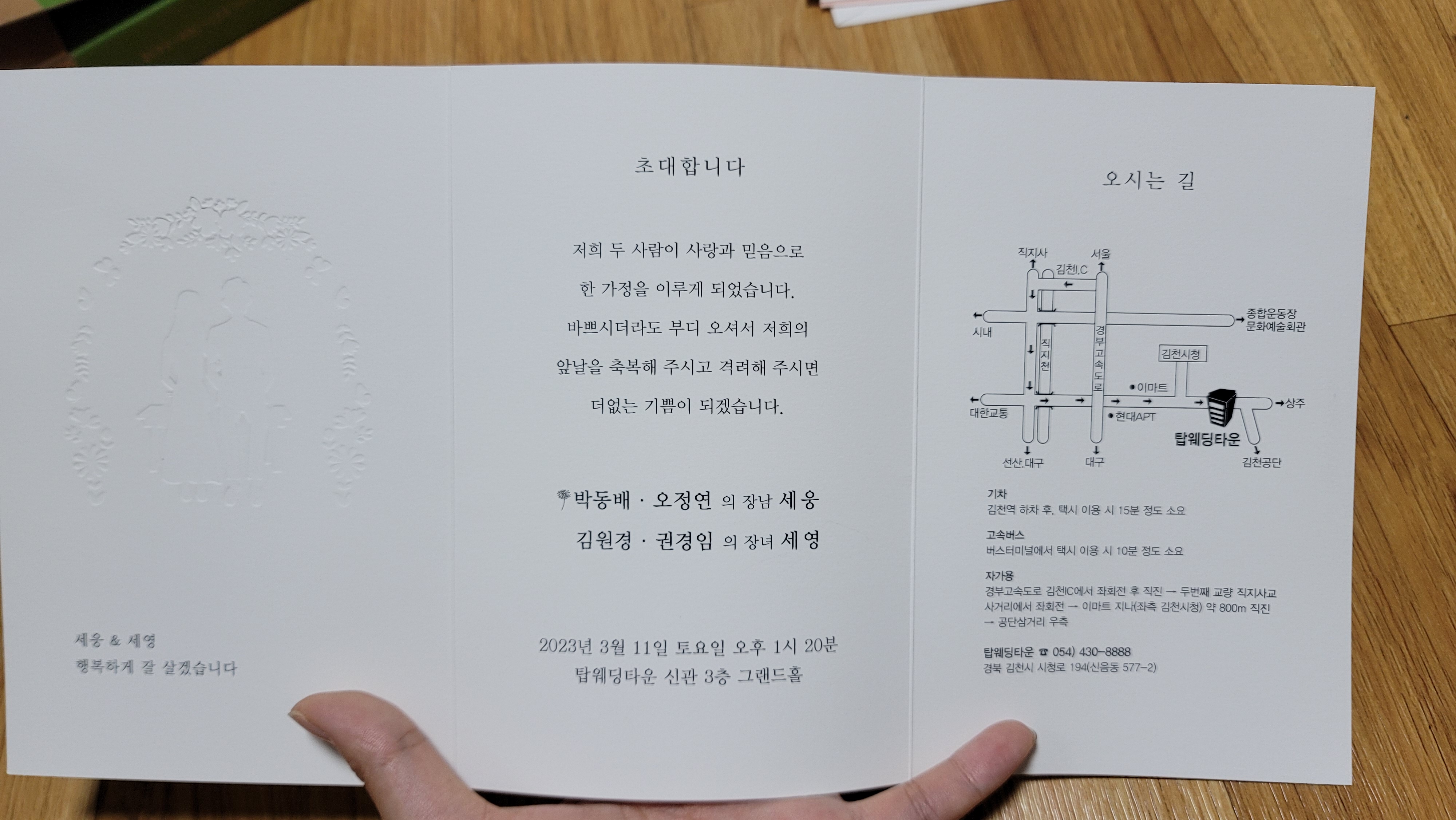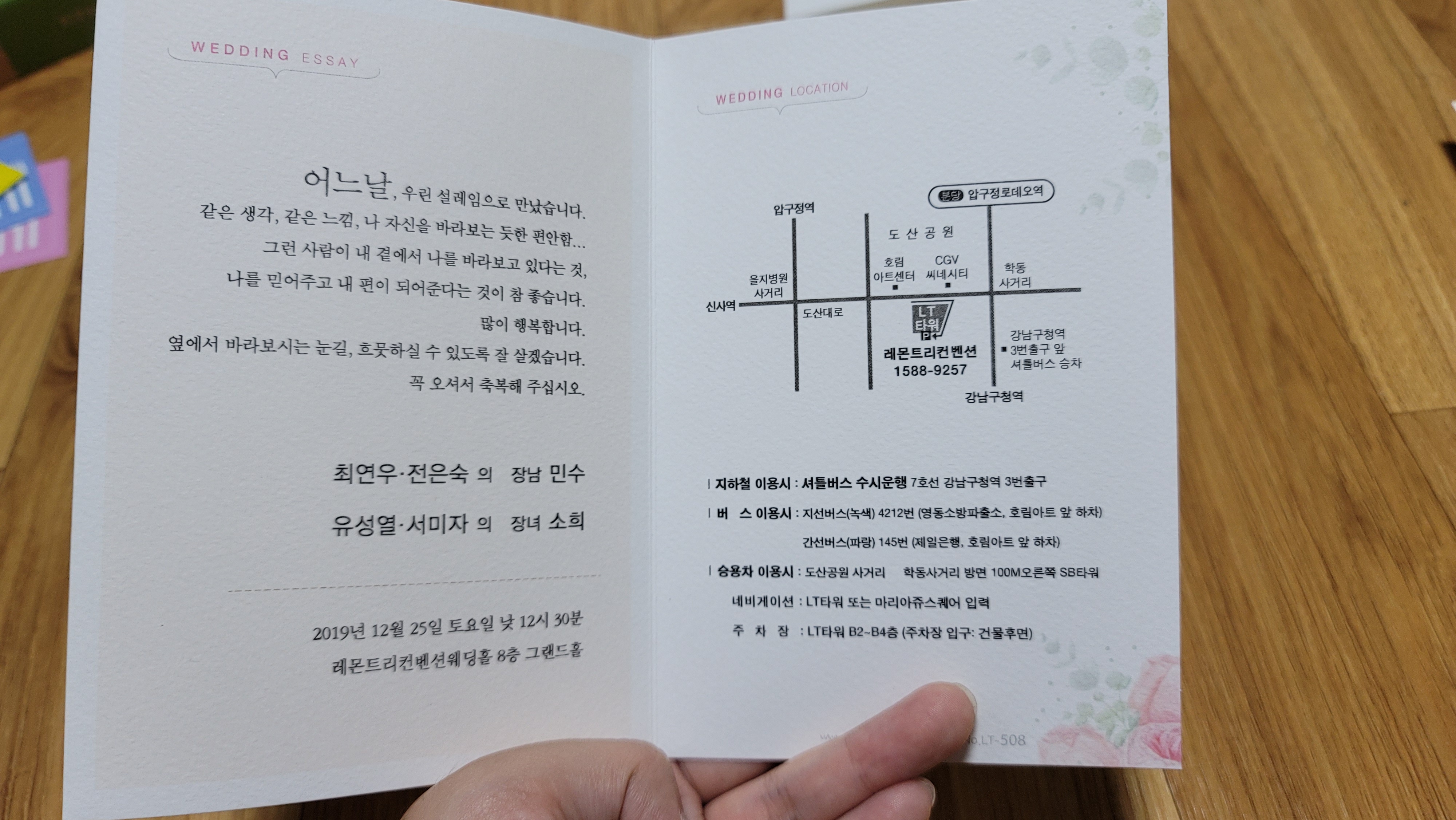 결혼식 날짜가 빠밤! 적혀 있고,